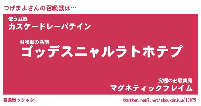 | ファンタジー風あだ名 | 『ツゲフェル』『エターナルツゲマヨー』 |