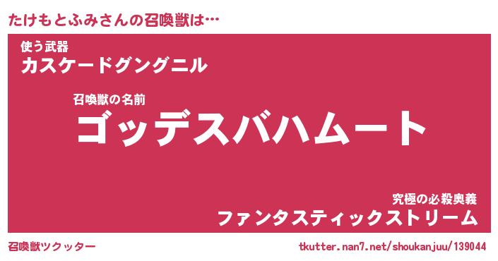 | ファンタジー風あだ名 | 『タケフェル』『ファントムタケス』 |