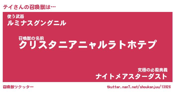 | ファンタジー風あだ名 | 『テイフェル』『エターナルテイー』 |