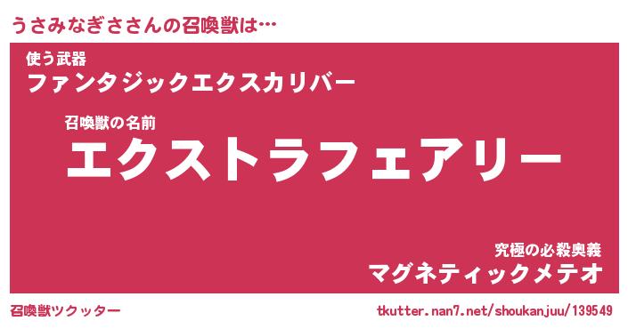 | ヒーロー風カッコイイあだ名 | 『スーパーウサミナギサ』『天弓騎士ウサ』 |