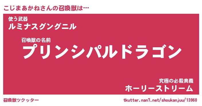 | 伝説のあだ名 | 『不死鳥の竜騎士こじまあかね』 |
