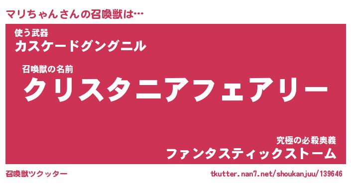 | ファンタジー風あだ名 | 『マリフェル』『エターナルマリチャンー』 |
