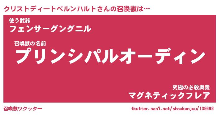 | 伝説のあだ名 | 『不死鳥のスナイパークリストディートベルンハルト』 |