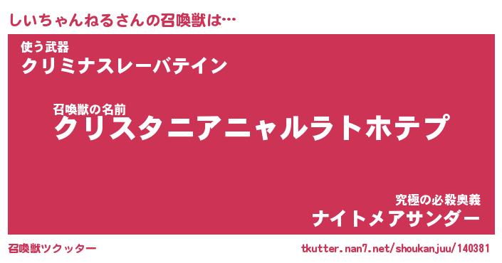 | 伝説のあだ名 | 『封印されしスナイパーしいちゃんねる』 |