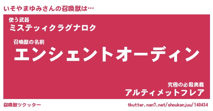 | ヒーロー風カッコイイあだ名 | 『スーパーイソヤマユミ』『魔戒騎士イソ』 |
