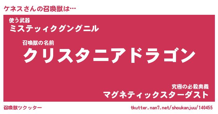 | ファンタジー風あだ名 | 『ケネフェル』『エターナルケネスー』 |