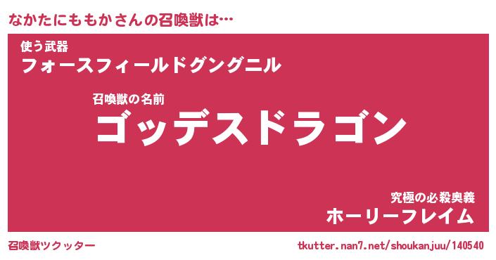 | 伝説のあだ名 | 『不死鳥の竜騎士なかたにももか』 |
