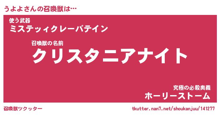 | ファンタジー風あだ名 | 『ウヨフェル』『エターナルウヨヨー』 |