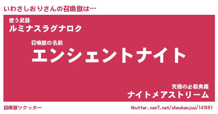 | ヒーロー風カッコイイあだ名 | 『スーパーイワサシオリ』『魔戒騎士イワ』 |