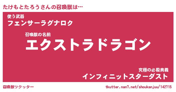 | ヒーロー風カッコイイあだ名 | 『スーパータケモトタロウ』 |