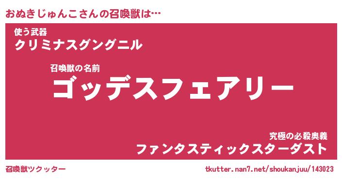 | 女子向けラノベタイトル風あだ名 | 『おぬきじゅんこ姫と円卓の騎士』 |