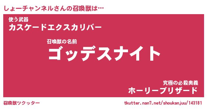 | 伝説のあだ名 | 『不死鳥の傭兵しょーチャンネル』 |