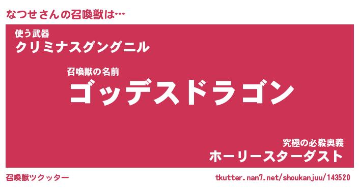 | 伝説のあだ名 | 『不死鳥の竜騎士なつせ』 |