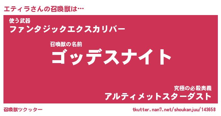 | ヒーロー風カッコイイあだ名 | 『スーパーエティラ』『幻影騎士エテ』 |