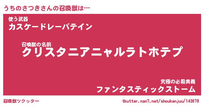 | ヒーロー風カッコイイあだ名 | 『スーパーウチノサツキ』『天弓騎士ウチ』 |