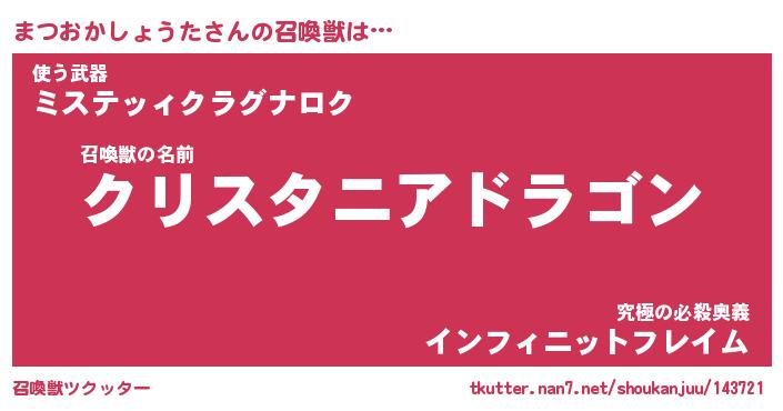 | 伝説のあだ名 | 『封印されし竜騎士まつおかしょうた』 |