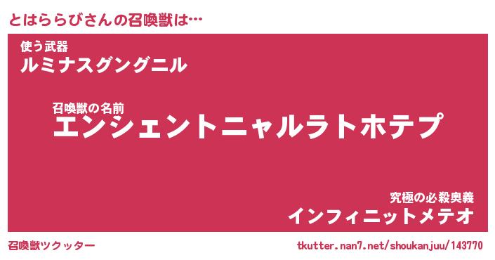 | 胡散臭い通販商品みたいなあだ名 | 『必ず成功する霊験あらたかなお札…その名も「とはららび」』 |