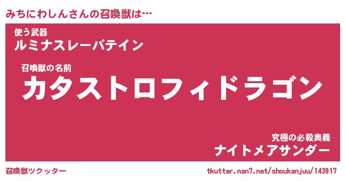 | 伝説のあだ名 | 『封印されし竜騎士みちにわしん』 |