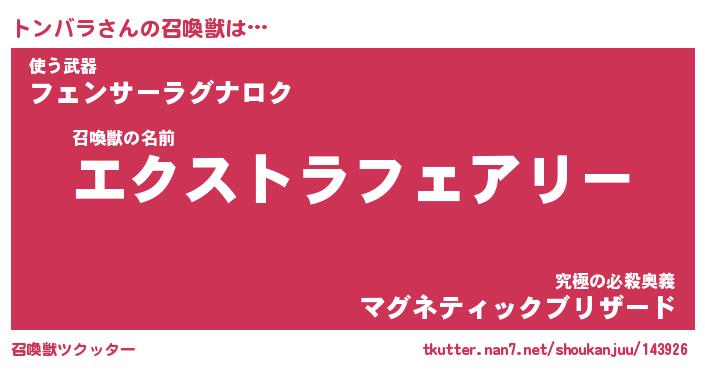 | ファンタジー風あだ名 | 『トンフェル』『エターナルトンバラー』 |