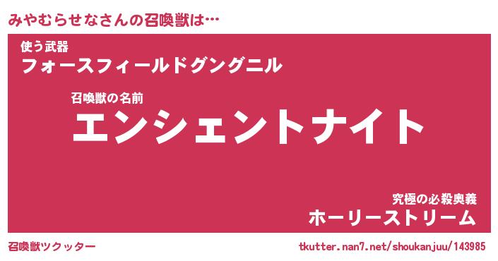 | ヒーロー風カッコイイあだ名 | 『スーパーミヤムラセナ』『暗黒騎士ミヤ』 |