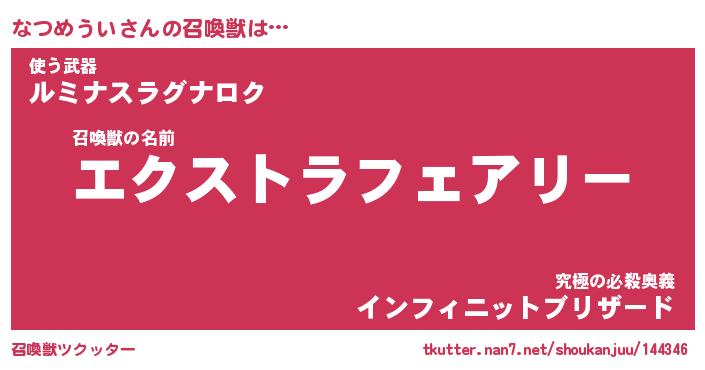 | ファンタジー風あだ名 | 『ナツフェル』『エターナルナツメウイー』 |