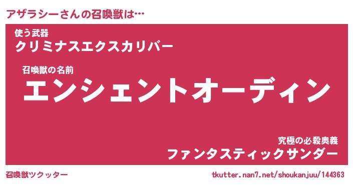 | ファンタジー風あだ名 | 『アザフェル』『エターナルアザラシーー』 |