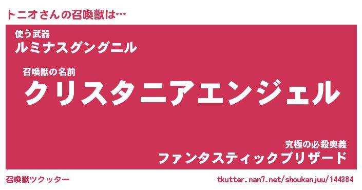 | 自動車の名前っぽいあだ名 | 『トニティマ』『トスラー』『トント』 |