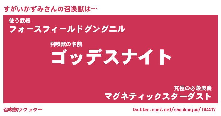 | 女子向けラノベタイトル風あだ名 | 『すがいかずみ姫と円卓の騎士』 |