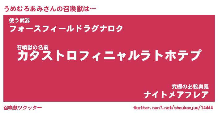 | ファンタジー風あだ名 | 『ウメフェル』『ファントムウメス』 |