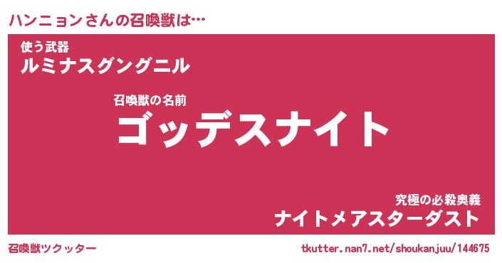 | 女子向けラノベタイトル風あだ名 | 『ハンニョン姫と円卓の騎士』 |