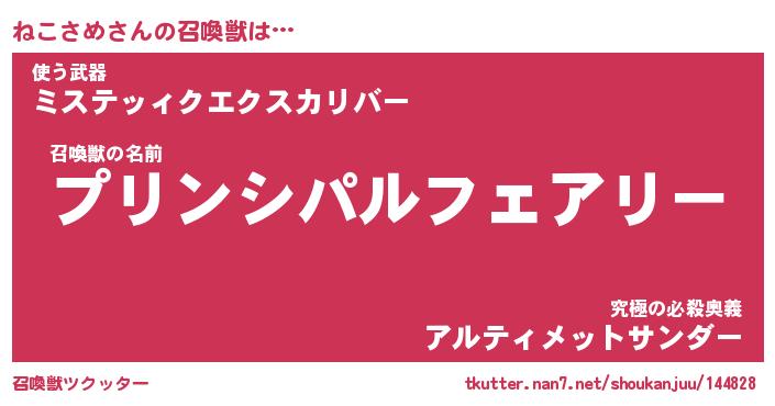 | 女子向けラノベタイトル風あだ名 | 『ねこさめ姫と円卓の騎士』 |