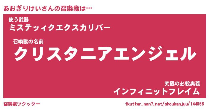 | 伝説のあだ名 | 『封印されし傭兵あおぎりけい』 |