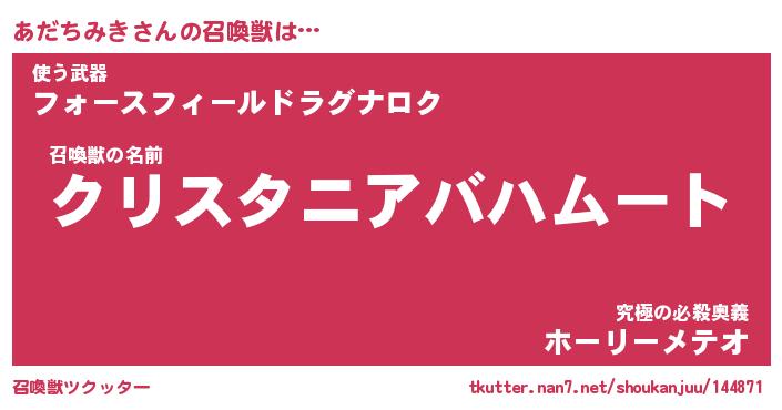 | 伝説のあだ名 | 『封印されし竜騎士あだちみき』 |