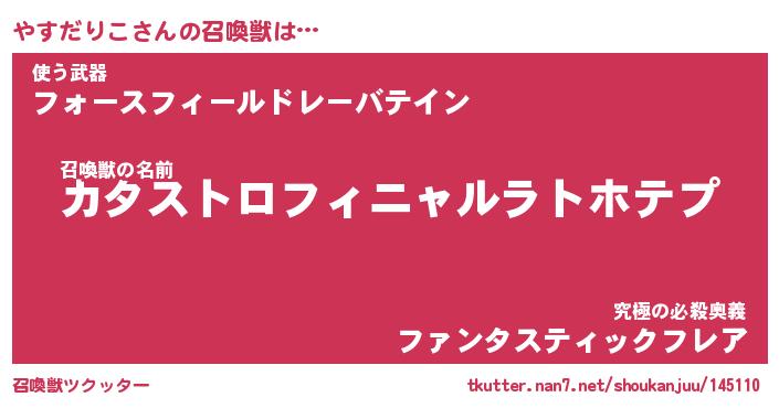 | ヒーロー風カッコイイあだ名 | 『スーパーヤスダリコ』『天弓騎士ヤス』 |