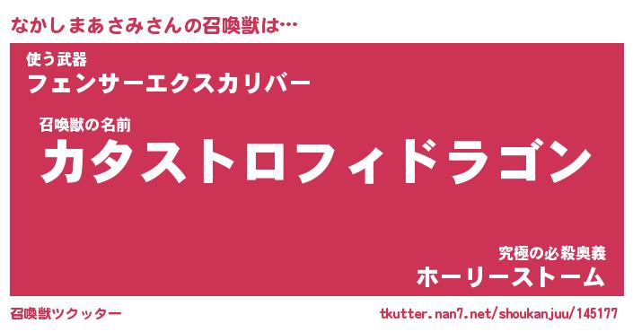 | 伝説のあだ名 | 『封印されし竜騎士なかしまあさみ』 |