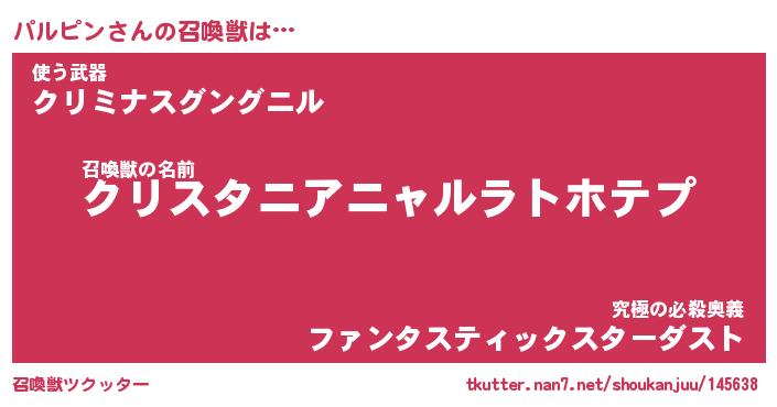| 意味不明あだ名 | 『ペロリンパルピン』『永久保存パルピン』 |
