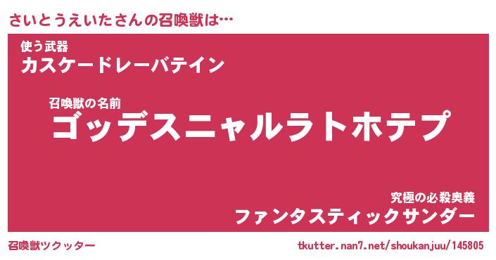 | 胡散臭い通販商品みたいなあだ名 | 『モテモテ間違いなし霊験あらたかなお札…その名も「さいとうえいた」』 |