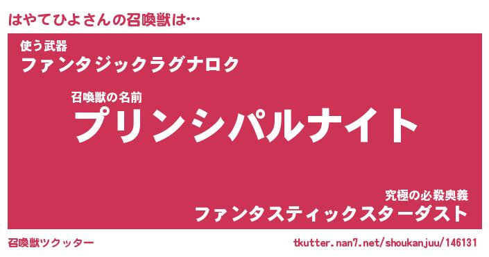 | ファンタジー風あだ名 | 『ハヤフェル』『エターナルハヤテヒヨー』 |