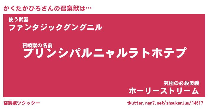 | 胡散臭い通販商品みたいなあだ名 | 『モテモテ間違いなし霊験あらたかなお札…その名も「かくたかひろ」』 |