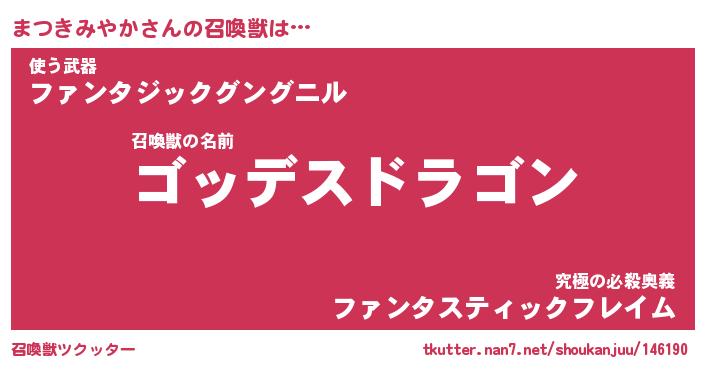 | 伝説のあだ名 | 『不死鳥の竜騎士まつきみやか』 |
