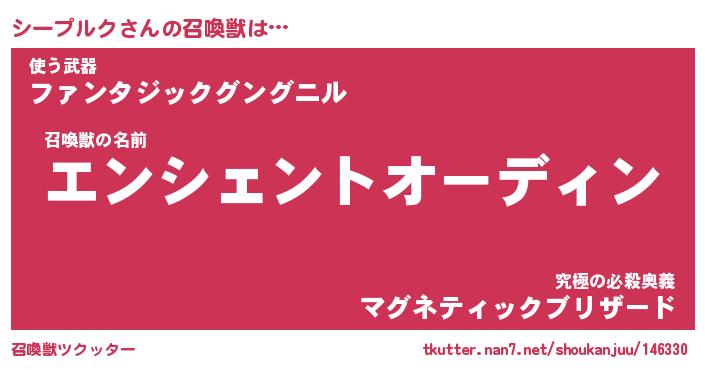 | ファンタジー風あだ名 | 『シーフェル』『エターナルシープルクー』 |