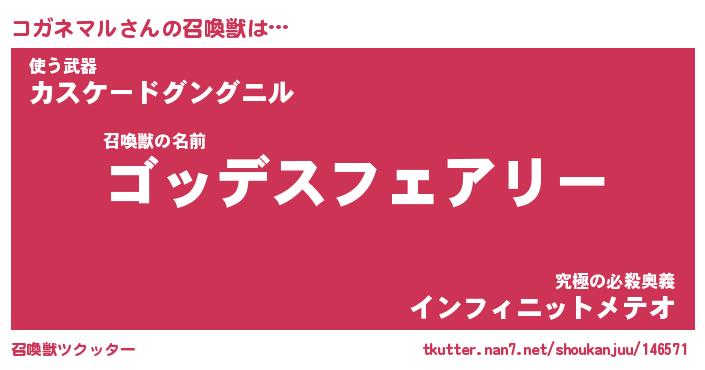 | ファンタジー風あだ名 | 『コガフェル』『エターナルコガネマルー』 |