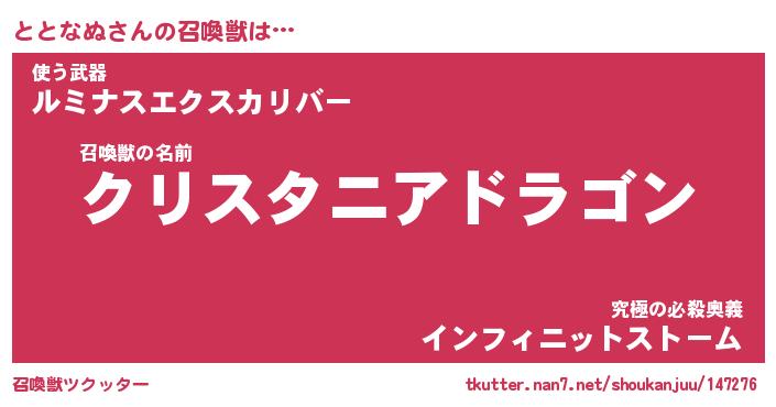 | 伝説のあだ名 | 『封印されし竜騎士ととなぬ』 |