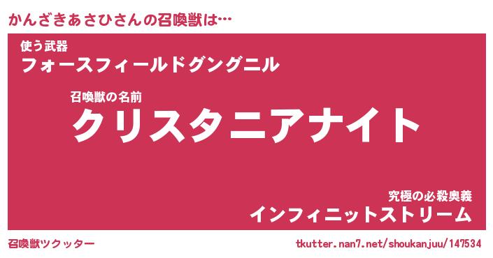 | ツイッター | かんざきあさひさんのツイッターID『dendenmushi_kun』 |
