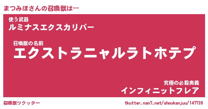 | ファンタジー風あだ名 | 『マツフェル』『エターナルマツミホー』 |