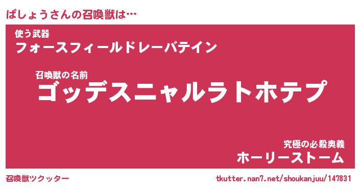 | ファンタジー風あだ名 | 『バシフェル』『エターナルバショウー』 |
