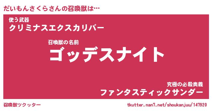 | 女子向けラノベタイトル風あだ名 | 『だいもんさくら姫と円卓の騎士』 |