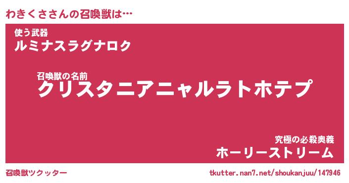 | ヒーロー風カッコイイあだ名 | 『スーパーワキクサ』『黄金騎士ワキ』 |