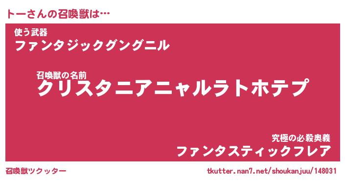 | 胡散臭い通販商品みたいなあだ名 | 『億万長者になれる霊験あらたかなお札…その名も「トー」』 |