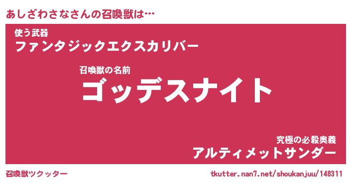 | 女子向けラノベタイトル風あだ名 | 『あしざわさな姫と円卓の騎士』 |